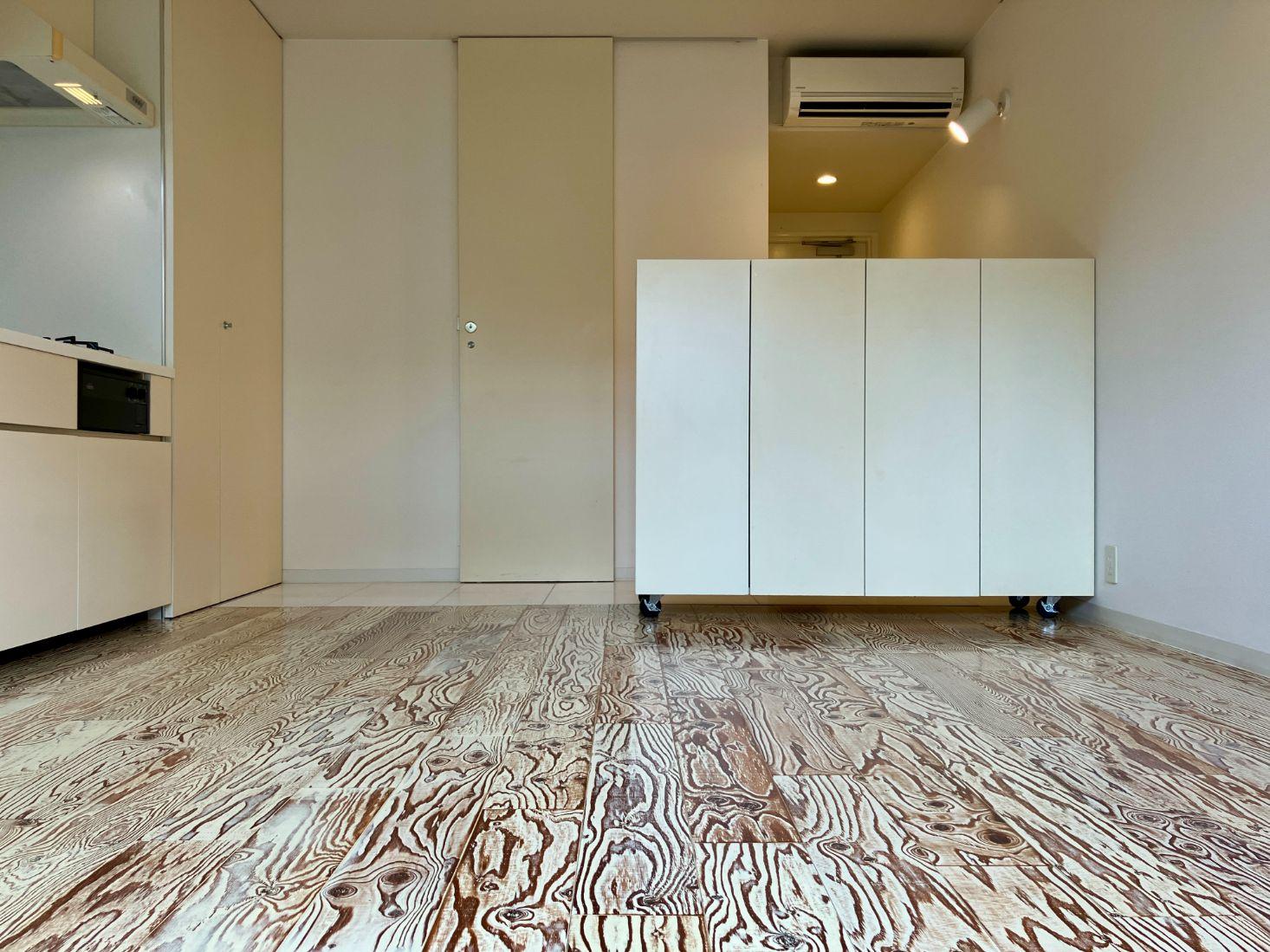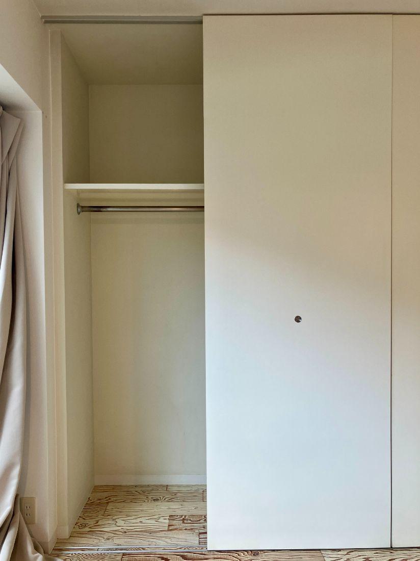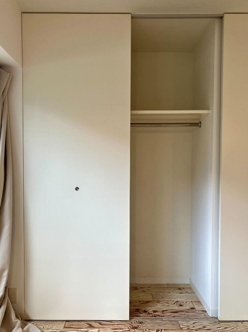 木の建具はすべて天井まですっと伸びていて、冷蔵庫や洗濯機はもちろんその中に収めるつくり。