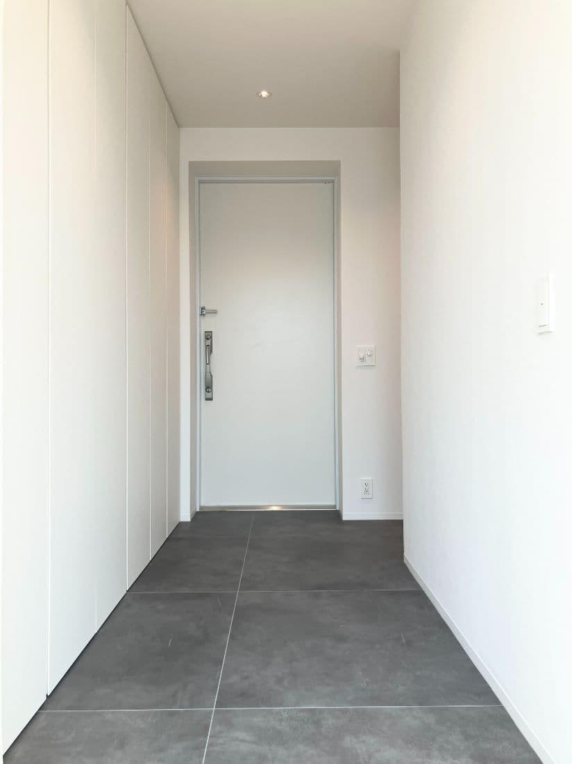 リビングから玄関を見ています。右手にもう1つの洋室とトイレがあります。