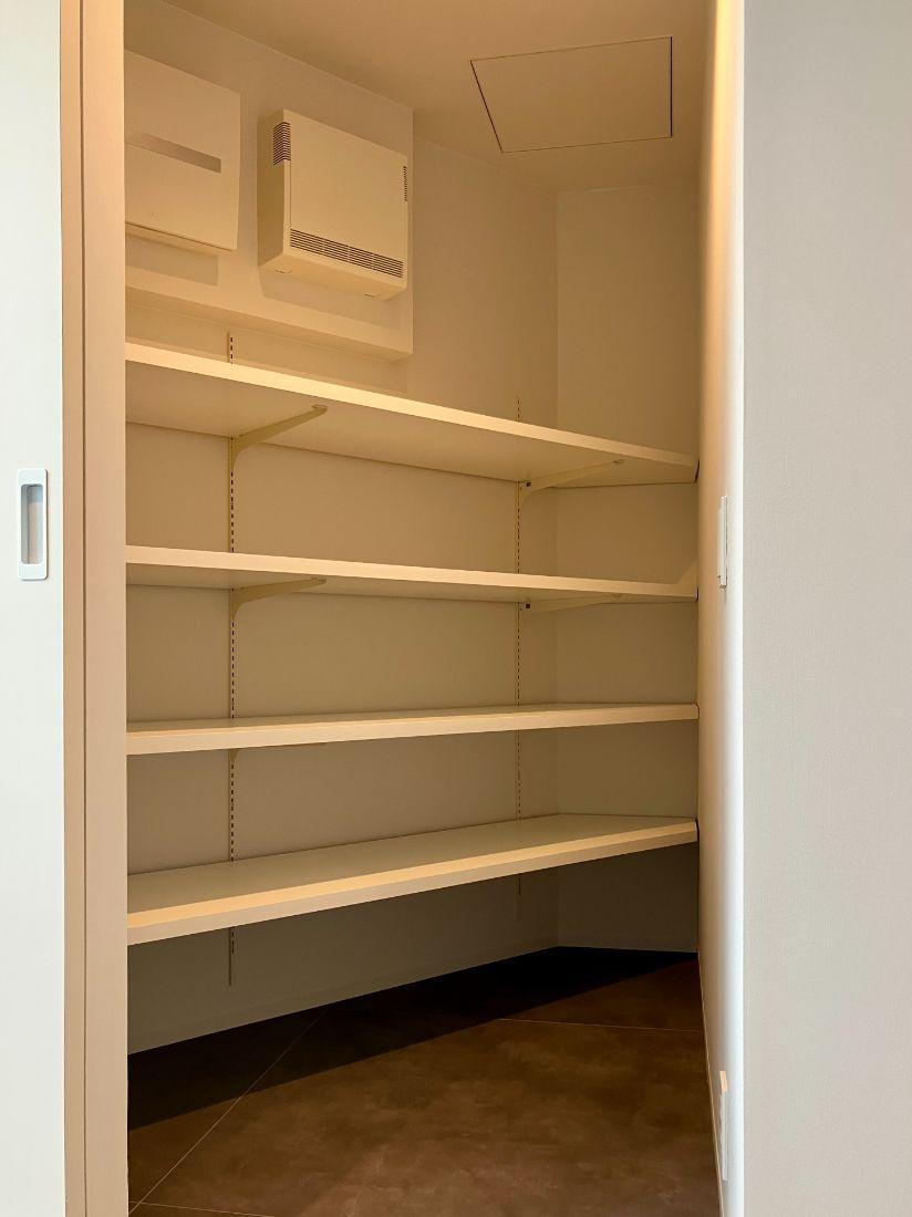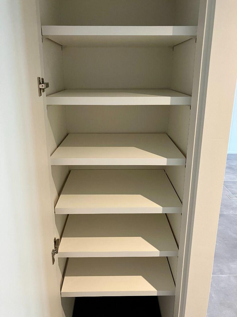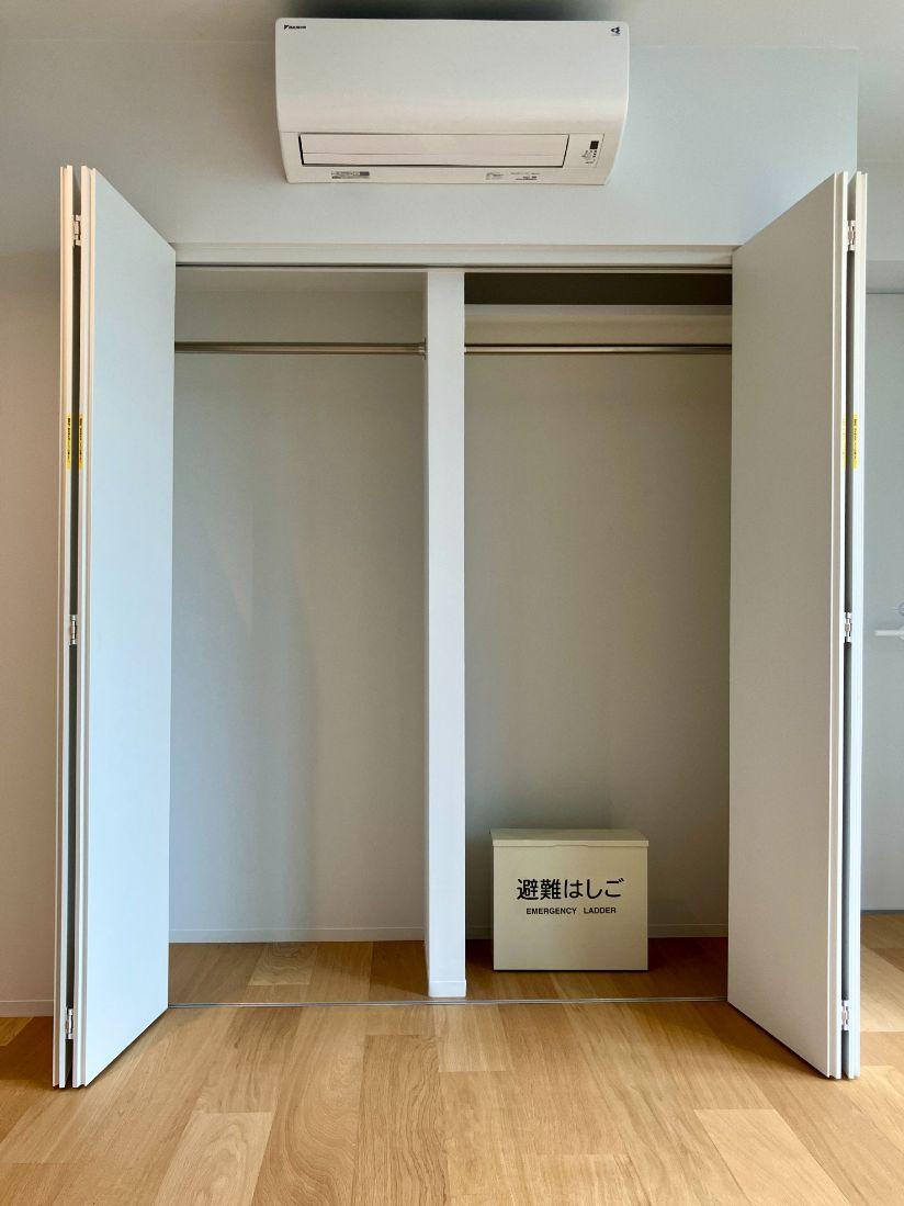 約10.3帖の洋室。壁は棚柱が埋め込まれており、棚板やハンガーパイプを設置できます。