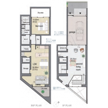 愛車をオブジェのように駐車できるガレージ付き住戸。