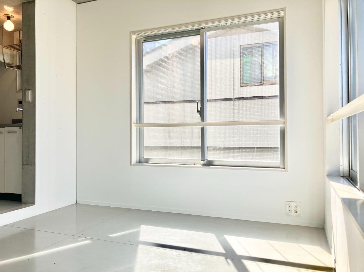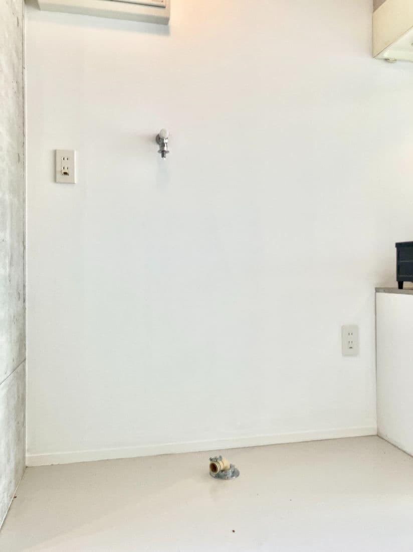 玄関を開けると、コンクリートと白で統一された無機質な空間がお出迎え。
