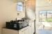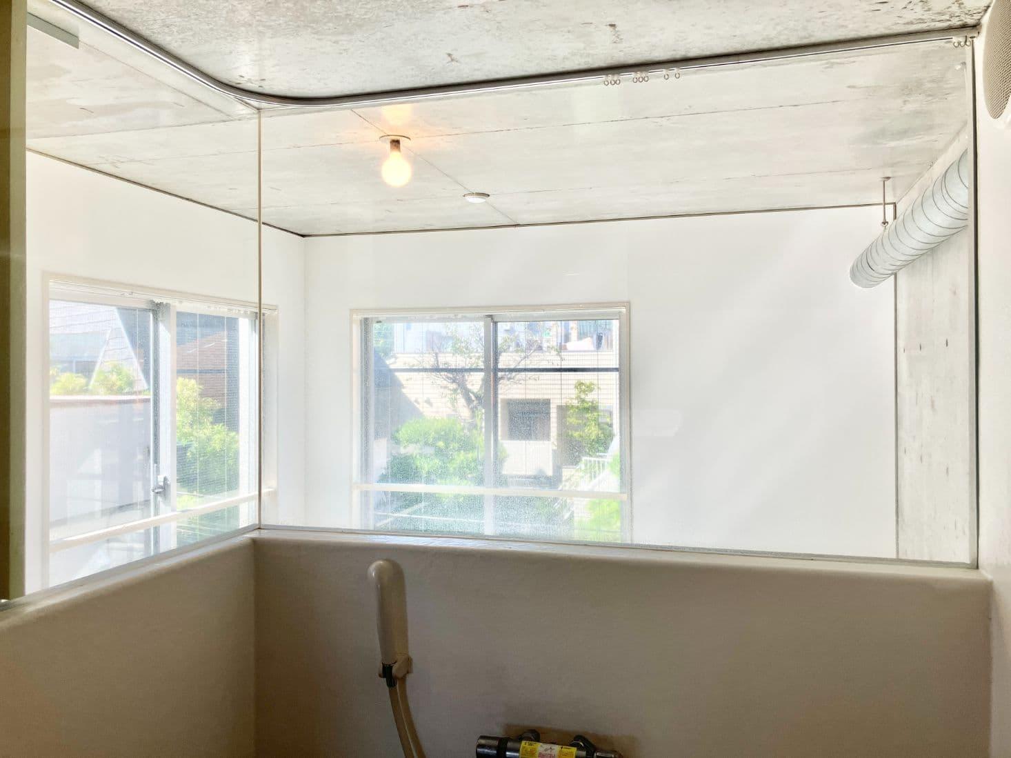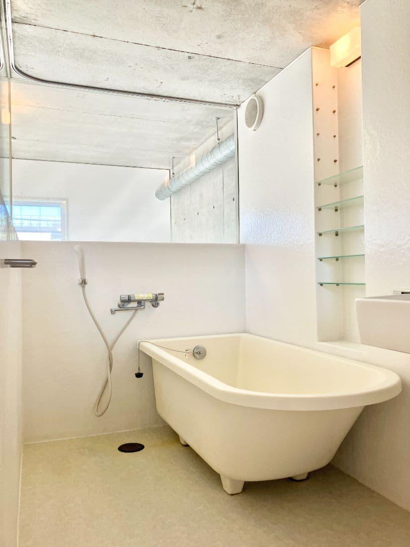 バスルームの上半分はガラス張りになっていて、デザイナーズ感満載です。