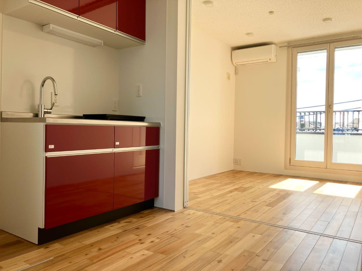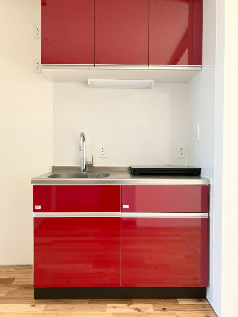 キッチンにカラーが取り入れられているのって、結構珍しい。だからこそわくわくです!ここまでビビットカラーだと勝手に体がキッチンに向かってしまいそう。
