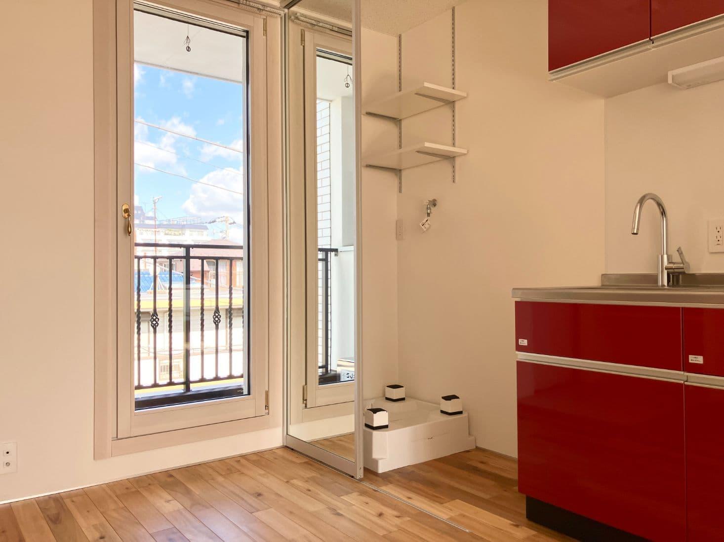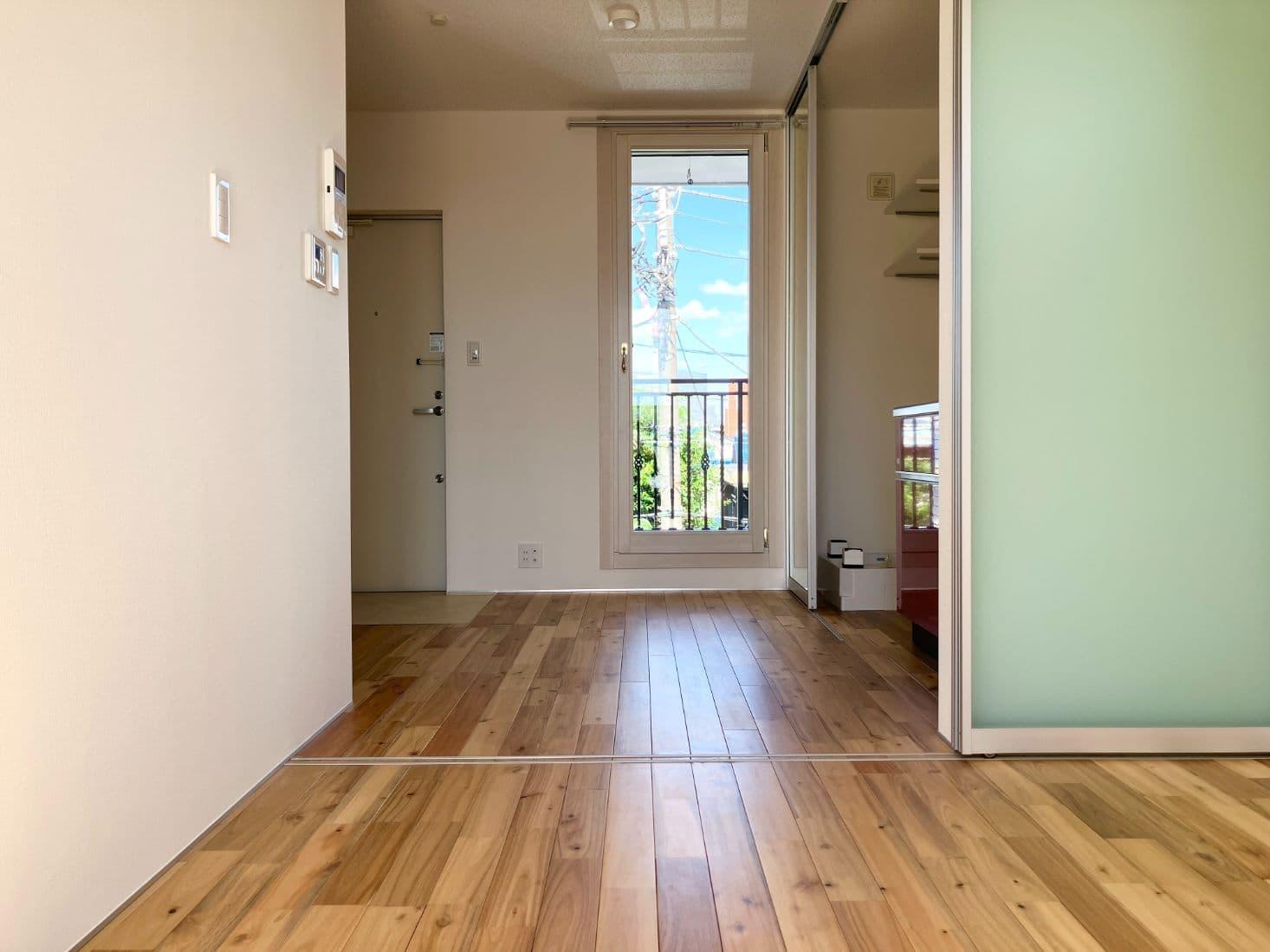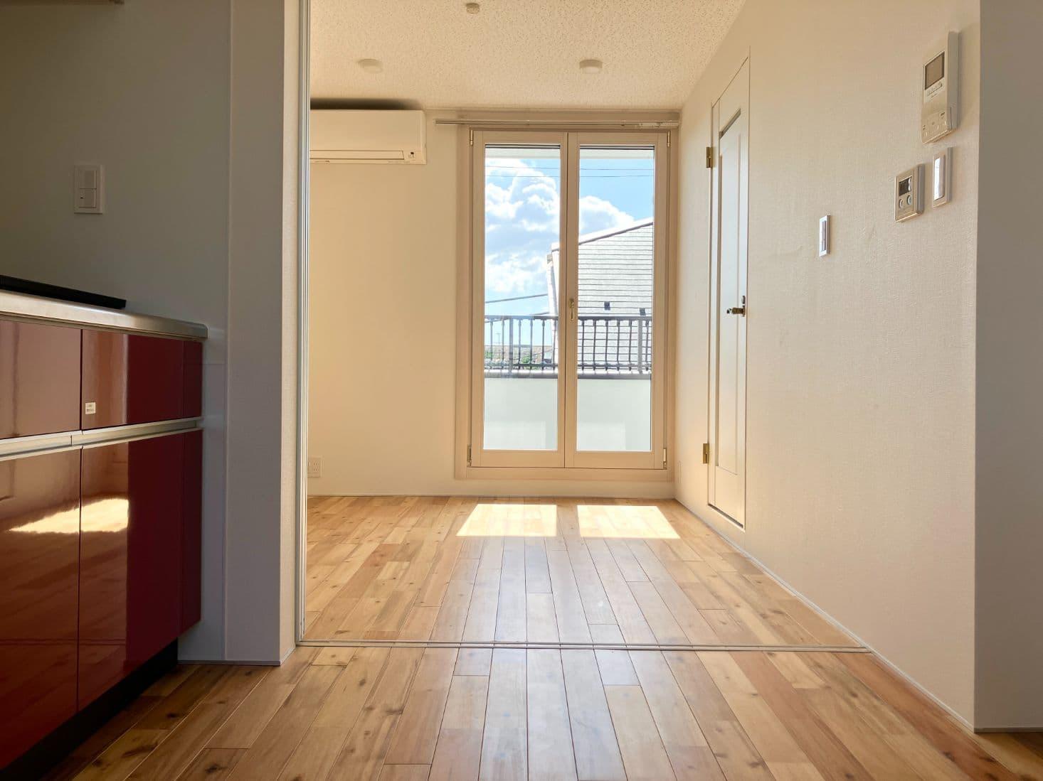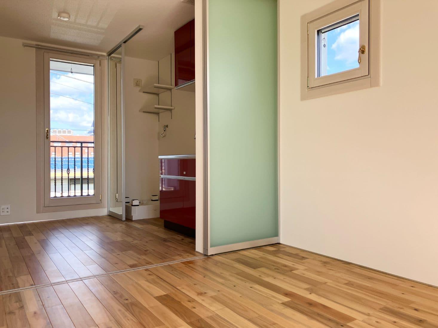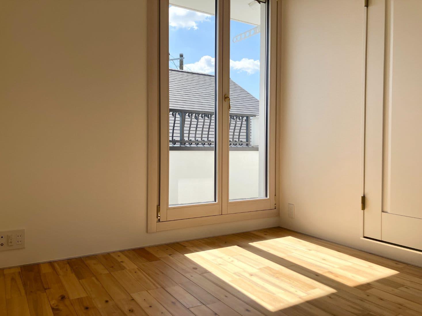キッチンだけではなく、お部屋の所々にレトロなデザインが組み込まれています。窓の取っ手がゴールドカラーのおしゃれな形をしていたり。
