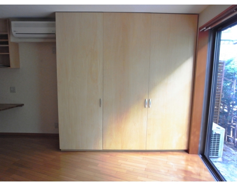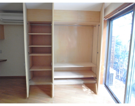 居住スペースには、天井まである大型クローゼットが設置されており、これだけあれば