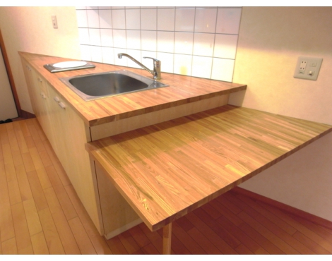 木材仕様のカウンターは何とも温かみがあり、これだけで一つのインテリア!