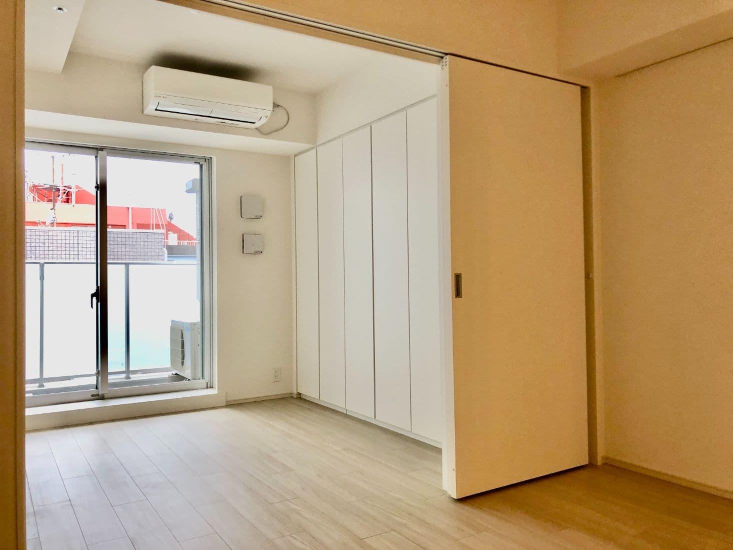 スライドドアを閉めてベッドルームと生活空間を分けてもよし!閉めずに解放感を感じるのもよし!