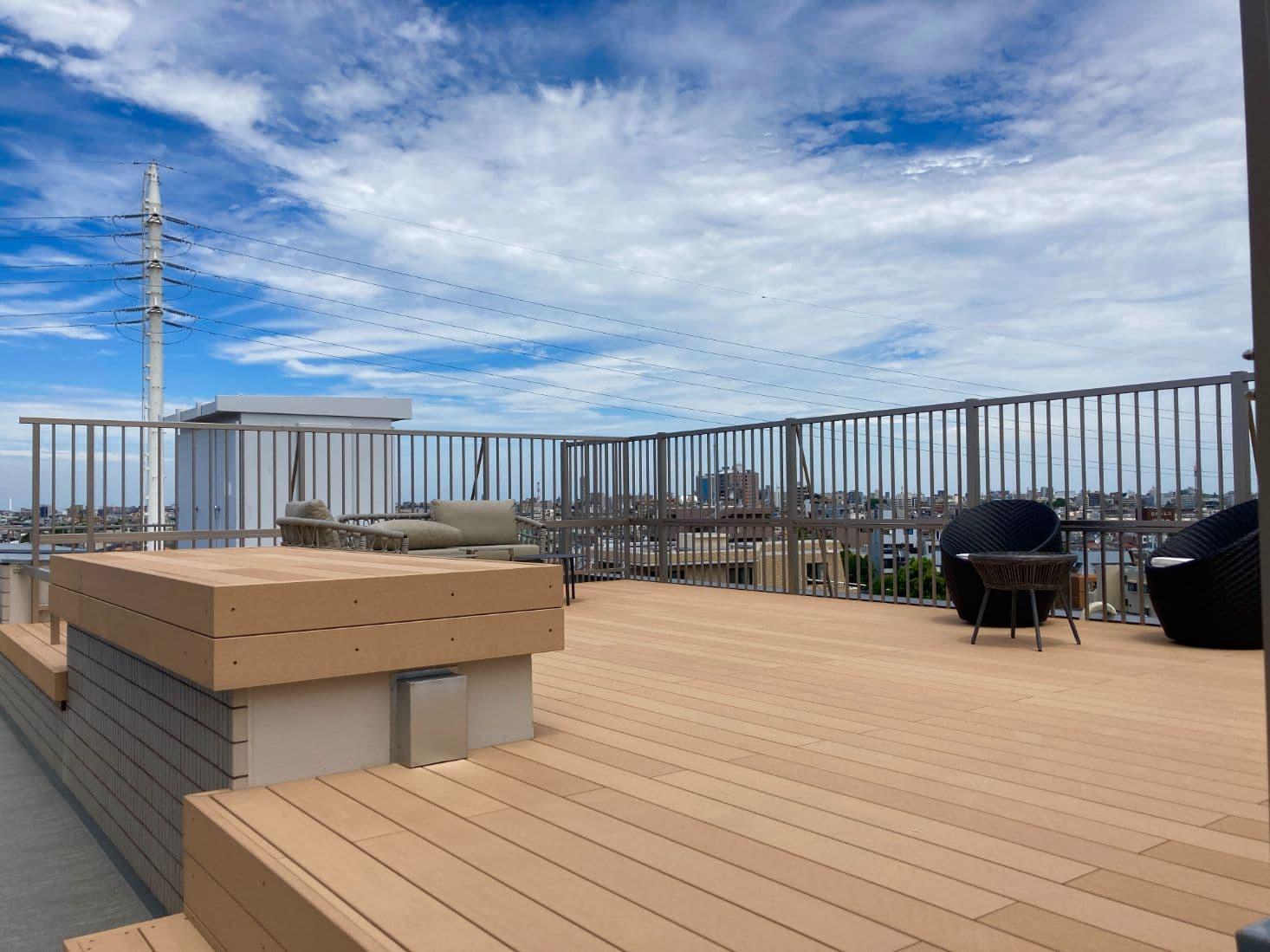 屋上には富士山が見えるテラス。