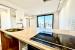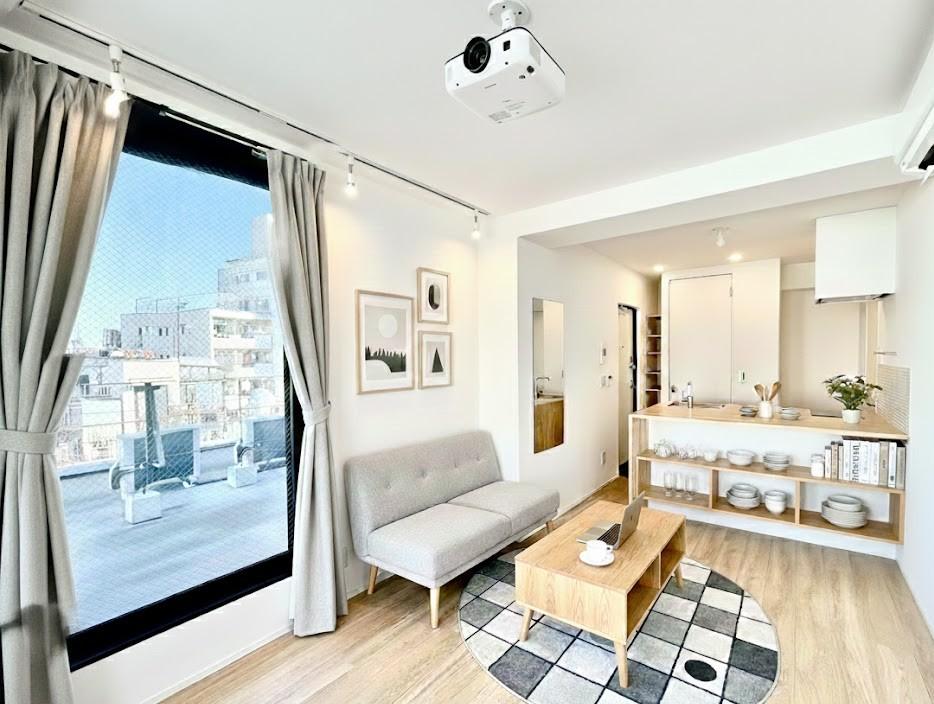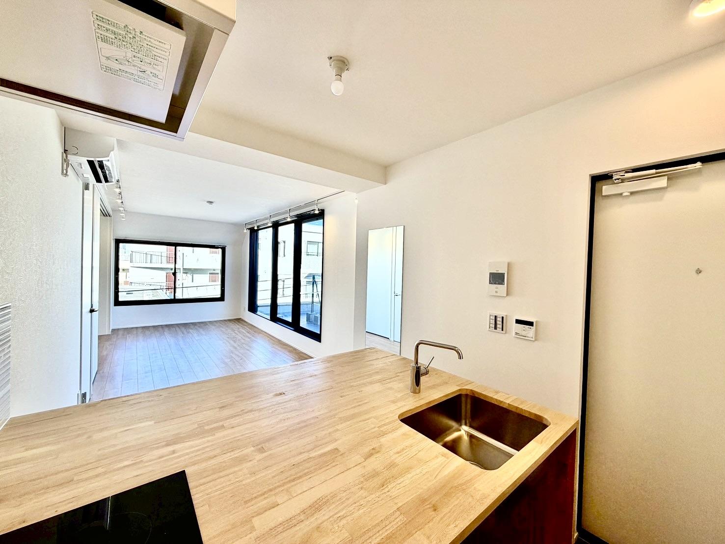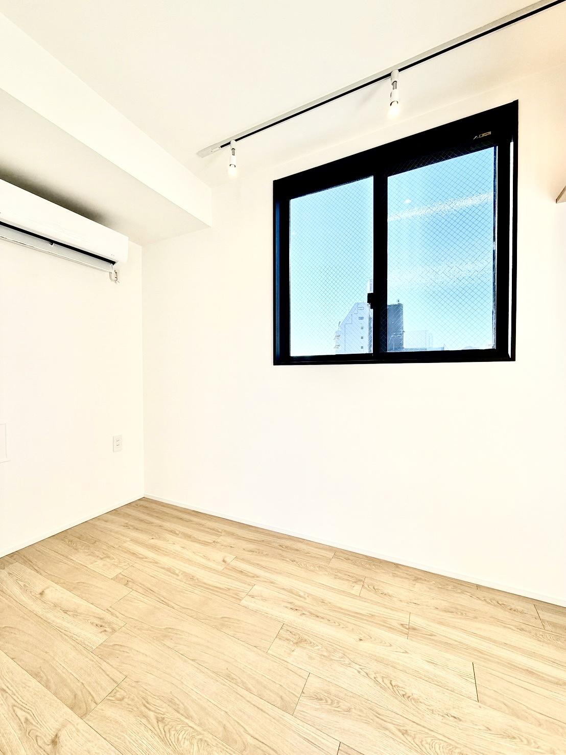 ドアを開けると、まず目に飛び込んでくるのは大きな窓から見える開放的な景色。明るいウッドフローリングと白い壁のシンプルな空間に、たっぷりの光が差し込みます。