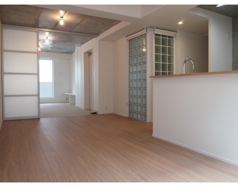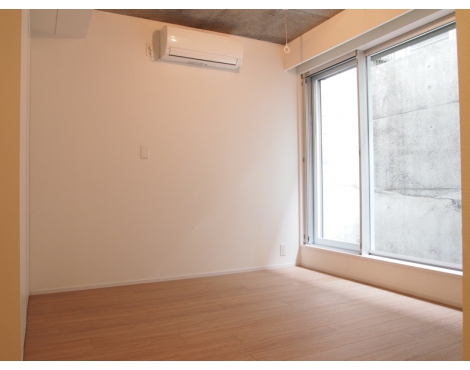 お部屋はナチュラルな木のフローリングにまっさらな白壁、天井はコンクリート仕上げの間違いない洗練バランス。