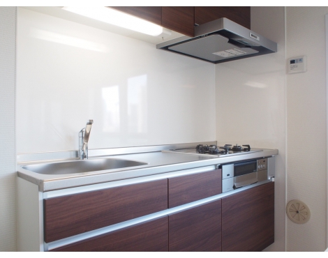 1Rだからこそ手を抜かず、お部屋にしっくりくるブラウンのキッチン。