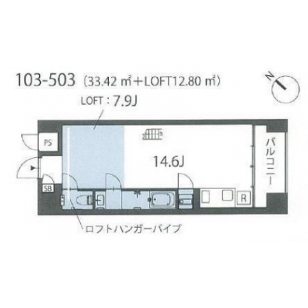 ロフトタイプのお部屋にはハンガーポール、